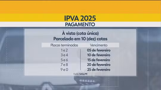 Read MoreO governo do estado divulgou o calendário de pagamento do Imposto sobre Propriedade dos Veículos Automotores (IPVA) de 2025 em