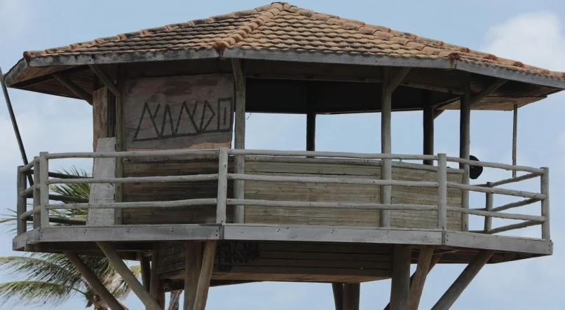 Porém, o cenário atual é de abandono: os postos de guarda-vidas estão degradados ou desocupados, apenas com a função de fazer sombra para alguns banhistas e com placas de madeiras usadas como remendos para tapar janelas.