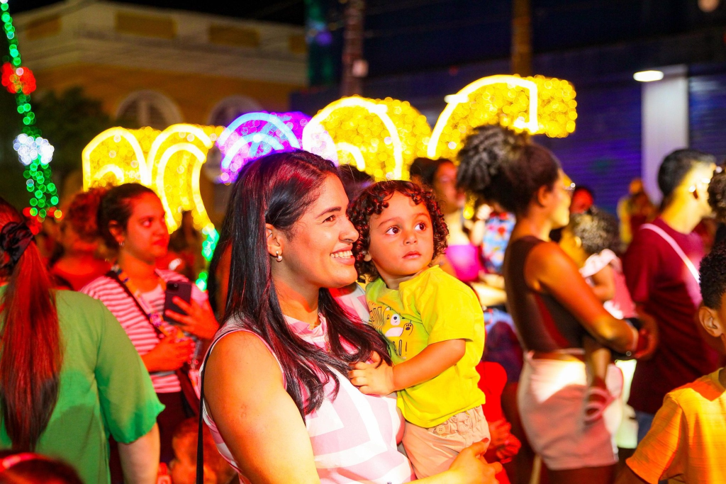 O evento também reuniu pais e responsáveis, que acompanharam de perto a diversão dos pequenos, fortalecendo o clima de confraternização familiar. O grande número de crianças e adolescentes presentes reforçou o sucesso da programação no polo natalino. A ornamentação especial deu ainda mais vida ao espaço, com estruturas iluminadas, elementos cenográficos e projeções temáticas exibidas na fachada da Casa da Cultura, criando um cenário repleto de luzes, cores e a magia do Natal.