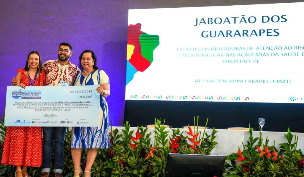 Um trabalho realizado pela Secretaria de Saúde da Prefeitura do Jaboatão dos Guararapes foi premiado no XV Congresso de Secretarias Municipais de Saúde de Pernambuco (COSEMS/PE), na última quarta (7), no município sertanejo de Triunfo. O trabalho “Estratégias inovadoras de atenção ao risco cardiovascular nas academias da saúde de Jaboatão, PE” ficou entre os quatro mais bem pontuados na 7ª Mostra Pernambuco Aqui Tem SUS – Paulo Dantas. O prefeito Mano Medeiros ressaltou como esse tipo de iniciativa pode auxiliar no município.
