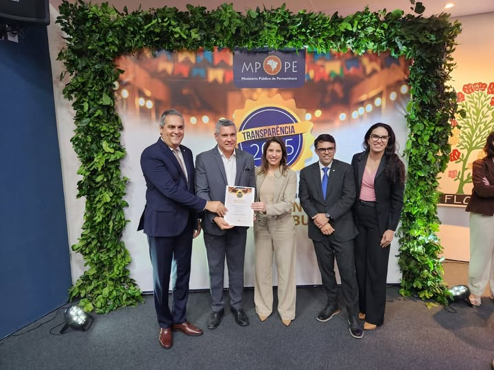 Nesta segunda-feira (21), a Prefeitura do Jaboatão dos Guararapes foi um dos municípios a receber o Selo de Transparência Festejos Juninos 2025, concedido pelo Ministério Público de Pernambuco (MPPE). A solenidade ocorreu no Auditório Desembargador Nildo Nery dos Santos, na sede da Escola Judicial de Pernambuco (ESMAPE), localizada no bairro de Joana Bezerra, no Recife.