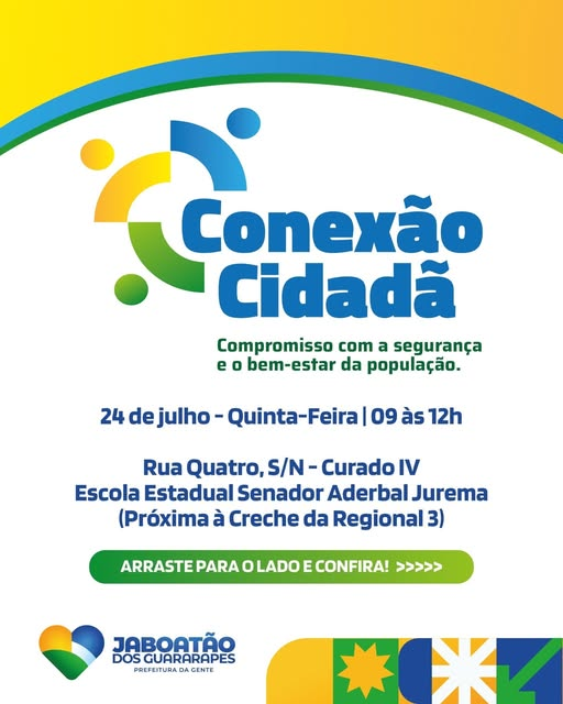 A Prefeitura do Jaboatão dos Guararapes lança, nesta quinta-feira (24), o programa social Conexão Cidadã, que tem como objetivo oferecer serviços públicos integrados, promovendo cidadania, saúde, segurança e bem-estar à população. O evento será realizado na Escola Estadual Aderbal Jurema, no bairro do Curado IV, e reunirá ações de diversas secretarias e órgãos parceiros, funcionando como uma grande rede de apoio e cuidado ao cidadão jaboatonense.