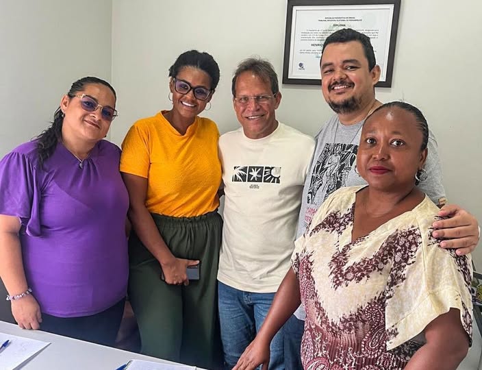 O vereador Henrique Metalúrgico (PT) recebeu, nesta semana, em seu gabinete na Câmara Municipal de Jaboatão dos Guararapes, a Comissão do Cadastro de Reserva do último concurso da Educação, realizado em 2024. A comissão, composta por Natana Cristina, Roseane Paes, Viviane de Andrade e Ailton Fernandes, foi recebida pelo parlamentar para discutir a importância da convocação de mais trabalhadores(as) da Educação aprovados no certame.